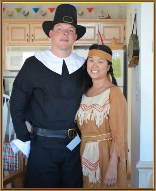 Robin’s dogs re-eanact the first Thanksgiving, Prinna’s kids represent the pilgrims and Jason F had a really big turkey. Casey had an even bigger turkey, and later he and his girlfriend also decided to play homage to their interracial relationship old school style. Kelliann’s family also dressed up.