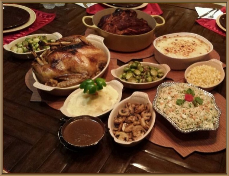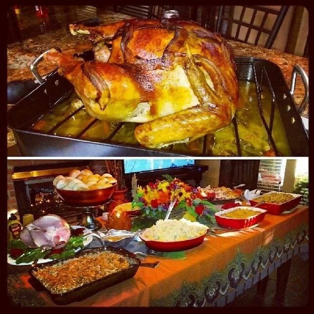 Juan wrote to us: “Since my side of the family is Mexican, we also made Molé sauce and more turkey along with Mexican rice and slow cooked pinto beans. Since everyone loves to drink.. We also had Jungle Juice and Moonshine options besides the traditional pop, beer and wine. Party started at noon and ended at 2am. Perfect day / night”