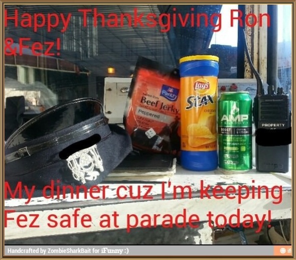 “Anonymous” was on the job this year for the NYC Thanksgiving parade, Our Good Friend Shrekkalove did a nice job on her Thanksgiving for one of pie and champagne, and Pat had no problem downing a Hungryman this year, cause he’s on the road.