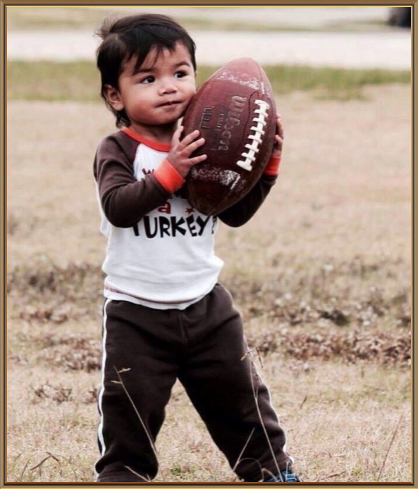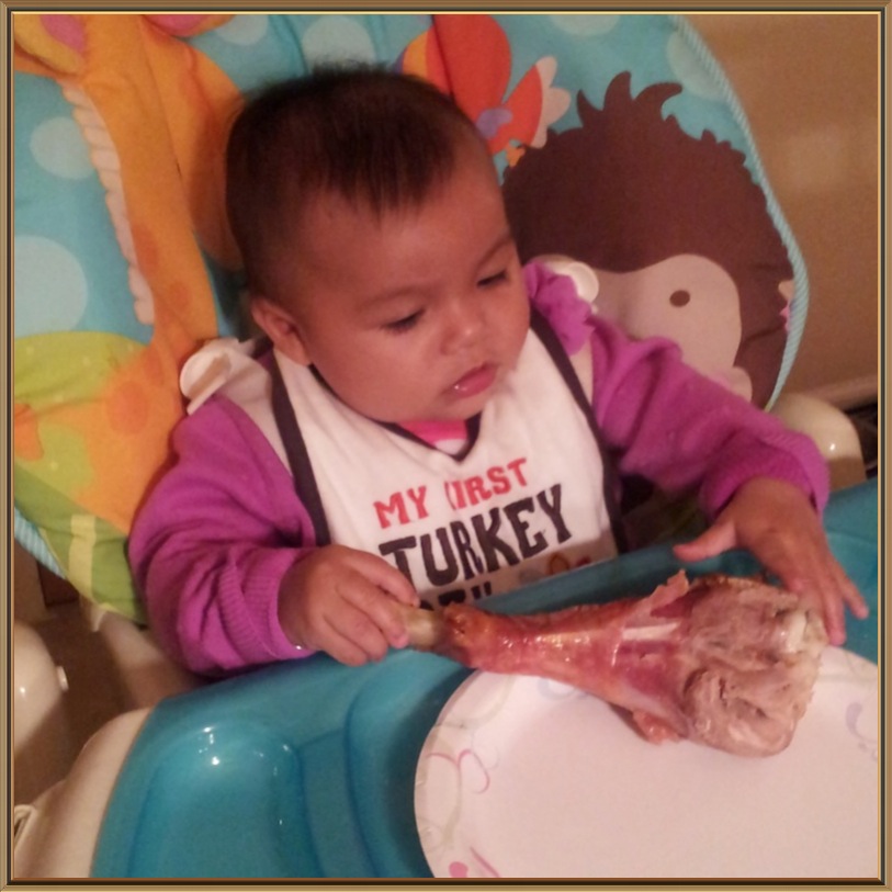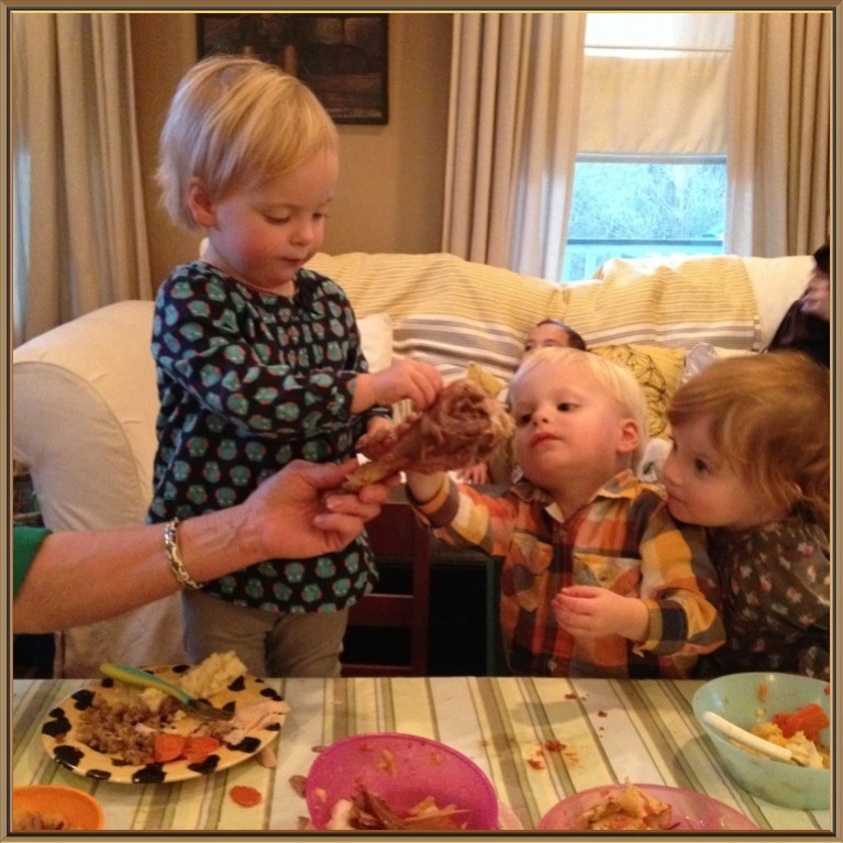 Marlene sent us her version of Thanksgiving football, Daniel’s triplets fight over the leg, and Danielle sent us this pretty shot of her kids in the kitchen. Jesus’s baby plays with a drumstick.