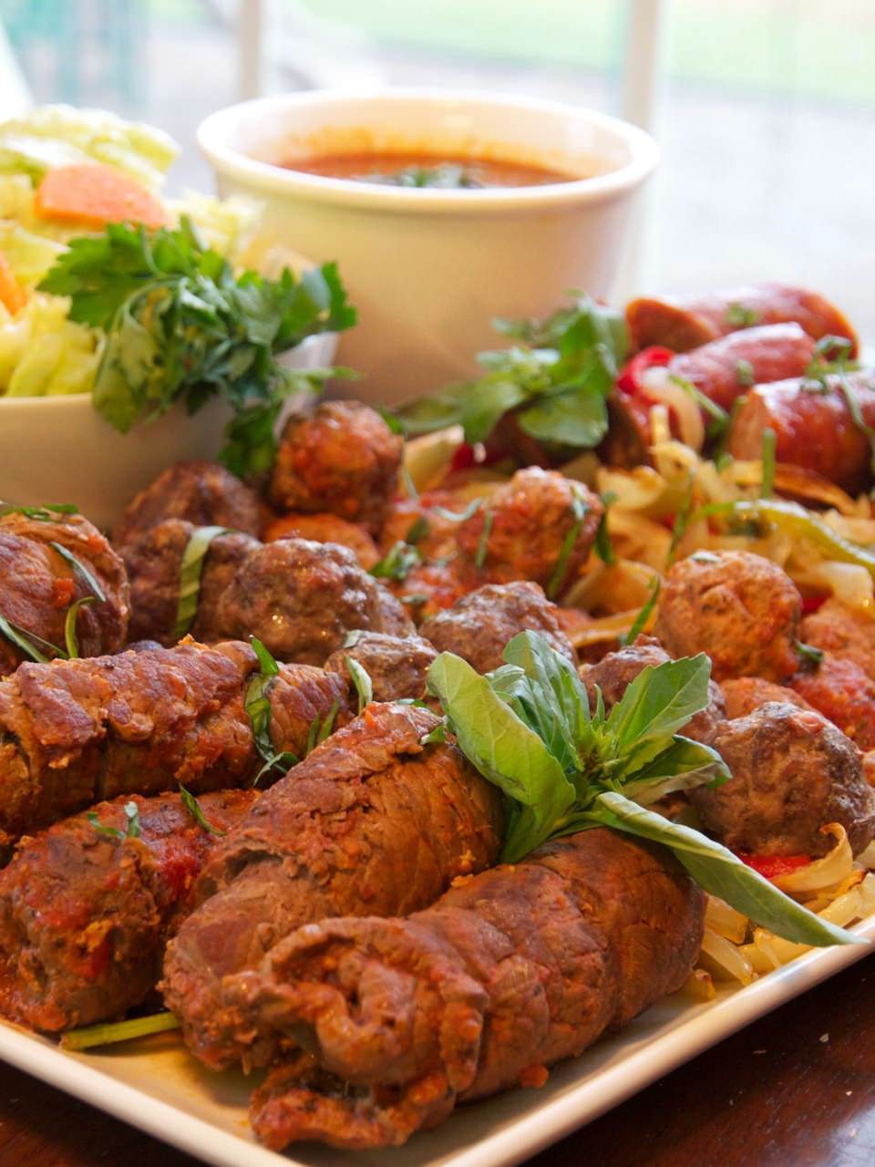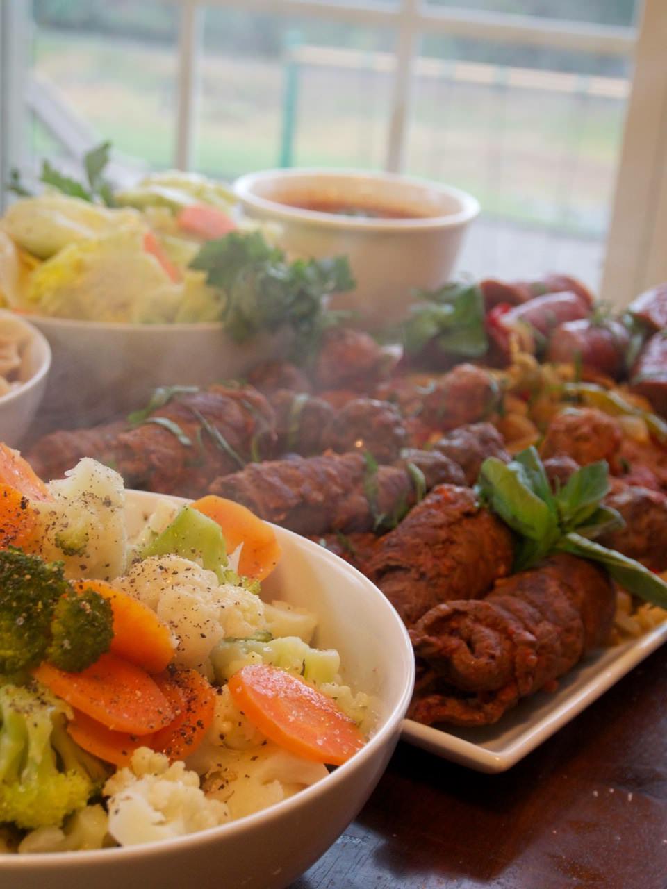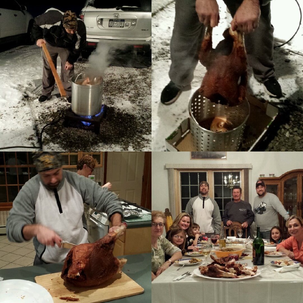 Jeff in Va: “We do traditional Thanksgiving on Wednesday with the in-laws, but then do a big dinner on Sunday to break out of the turkey monotony. Homemade Brasciole, meatballs and “red sauce”. Sausage and peppers, pasta, veggies, salad… The Works!”