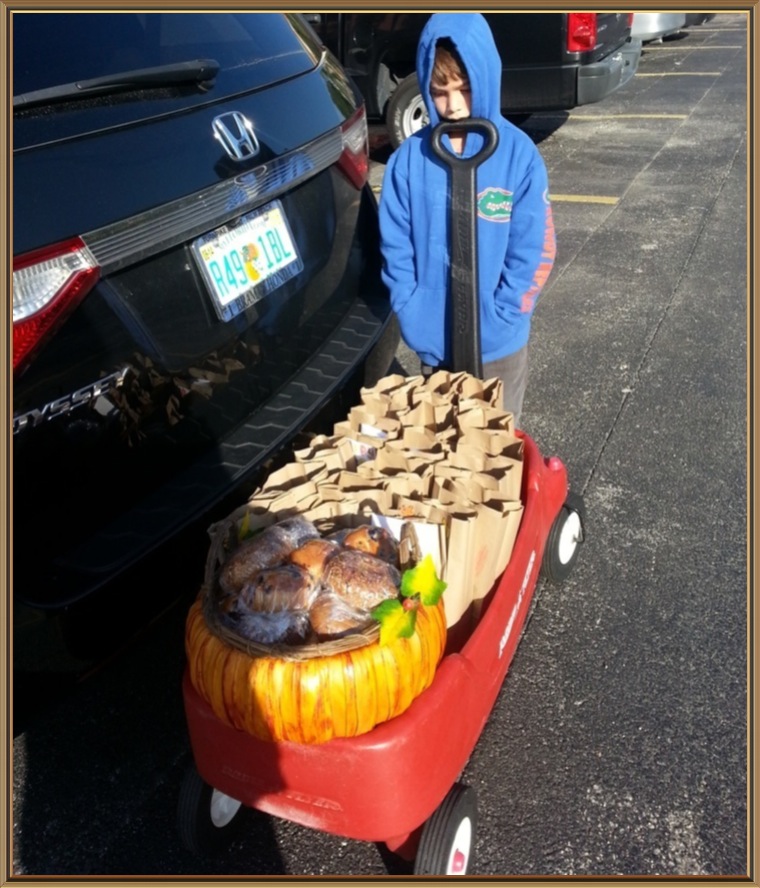 “This is our annual Thanksgiving Day visit to Miami Children’s Hospital. Our son had Open Heart Surgery when he was born. They saved his life. We where there with him on Thanksgiving and now we bring care bags to all the Heart Babies parents on Thanksgiving morning.”