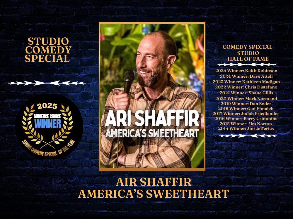 The BEST STUDIO HOUR COMEDY SPECIAL award goes to ARI SHAFFIR, America’s Sweetheart    Read all the nominees here.