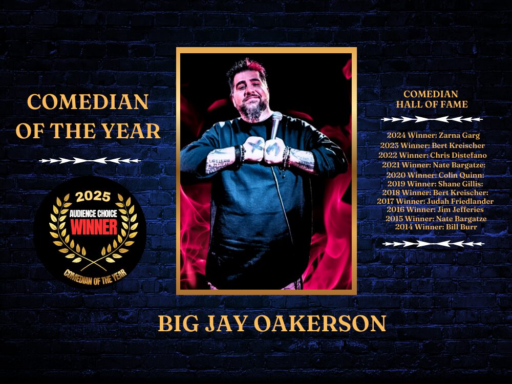 The coveted STAND UP COMEDIAN OF THE YEAR goes to BIG JAY OAKERSON. He is crushing comedy with his new special, and as cohost of SiriusXM’s The Bonfire plus he’s 1/3 of the Legion OF SkanksRead all ten of our amazing Comedian of the Year nominees here.