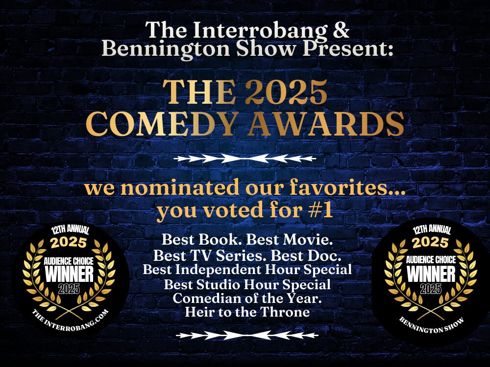 You’ve been voting for the last two weeks for the best of everything in comedy, and now its time to tell you all the big winners! It’s been an exciting year with over 15,000 votes from 58 nations voting in our comedy categories including Stand Up Comedian of the Year, Best Independent Hour Stand Up Special, Best Studio Hour Stand Up Special, Best Book Written by a Comedian, Best Comedy Movie, Best Comedy TV Show or Series, Best Comedy Documentary and Heir to the Throne