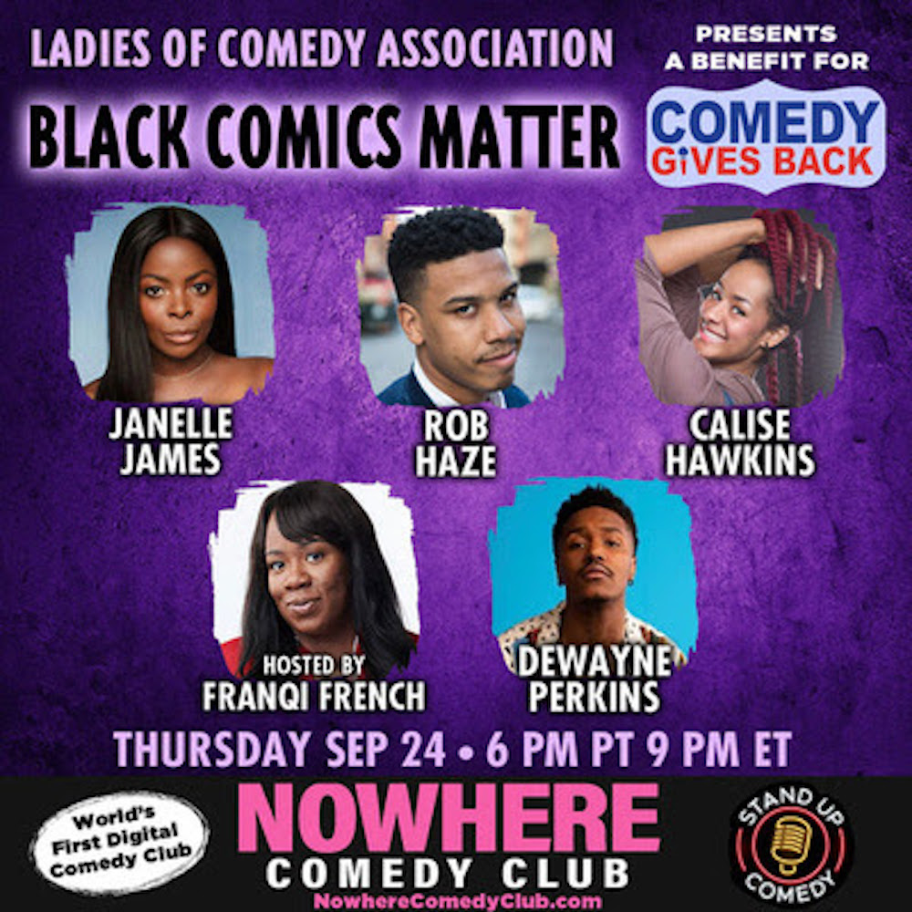 Black Comics Matter: a Comedy Gives Back fundraising comedy show goes live on September 24th at 9pm in the East, 6pm on the West Coast.