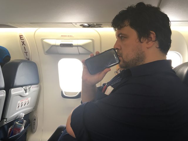 Stress personified. The look of pure anger with a touch of “losing it” when Chris finds out duty-free will not be delivering his cigarettes in time for his flight. Hello Darkness, my old friend.