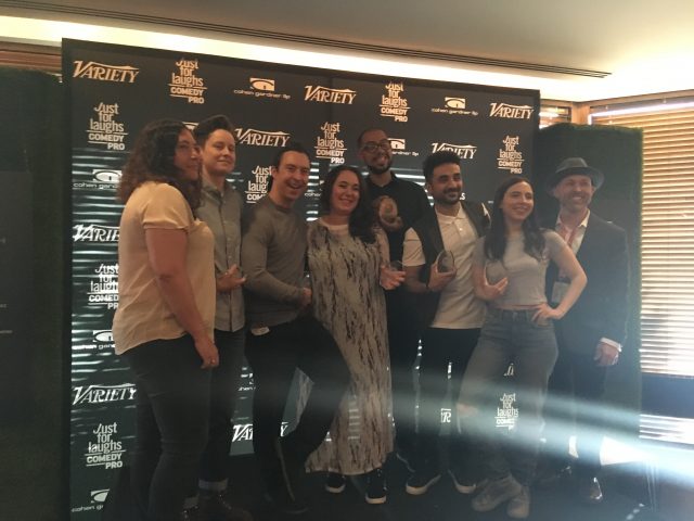 At the Variety’s Top Ten Comedians to Watch party, I achieve this photo by pushing to the front row and waving to Liza Treyger like an embarrassing mom at a school function. What!? Is it so wrong that I’m proud? Congrats to this year’s winners!