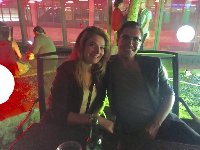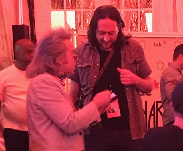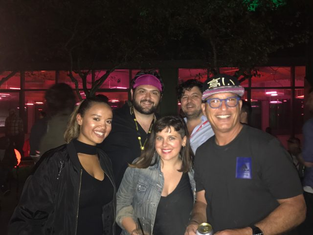 Jeffery Gurian works his networking skills with director Mike Bonfiglio at the Funny or Die Party. Comedy Matters, but so does your social game!