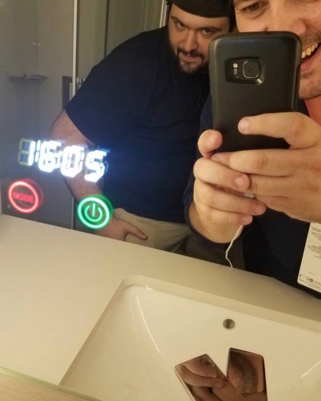 The boys getting prettied up for Comedy 101 in Chris’ futuristic hotel bathroom. This is what it looks like when the mirror is smarter than the lifeforms looking into it.