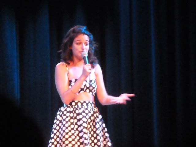 There are very few people I still get excited about meeting but Jenny Slate was definitely one of them. Every time I was on the set of Kroll Show and especially when I was in the Pub-LIZ-ity/Blisteritos Dad Academy Graduation sketch I was hoping to meet her but we weren’t on set at the same time. So when I had the chance to attend the last ever Big Terrific Show out in Brooklyn at a place appropriately called Warsaw (because it seemed to be some kind of a Polish center, and all the help and the snacks were Polish), I jumped at it. Jenny Slate, Hannibal Buress, Joe Mande and Max Silvestri were all on the show. It was a packed house of over 500 people, but it could have been a thousand for all that me and Joe Mande know. He was on the show too and when I asked him how many people he thought were there, he also said he was not a good judge of how many people fit into a room.