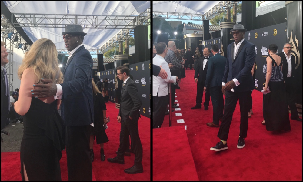 Dom Irrera was on the dais for “ The Roast of Bruce Willis” and is a comedy legend who came up through The Comedy Store. Due to the recent passing of Store owner, Mitzi Shore I asked Dom to tell me a little bit about her. He said the one thing he wishes more people knew about her was how funny Mitzi was and how much of a trip she was to hang out with. He said that “when she loved you, she really loved you.” He then shared that he and Rosanne Barr came up at the same time and were definitely Mitzi’s pets at the time and the two of them were given complete artistic license to do and say anything up there on the stage. He was very humble and sweet when I replied that Mitzi must have seen his amazing gift for finding the funny very early on. He then added that he has evolved over time and no longer just finds the funny, he now “filets the funny” adding that there are a lot of people who find the funny but then leave too much fat on it. Where as he filets the funny until it is the perfect cut! As for “The Roast” he was most looking forward to seeing his good friend Bruce Willis get roasted. He was interested to see the different angles people were going to take; like how many different ways they’ll be able to tell a “Die Hard” joke. Dom Irrera really considers Bruce to be a true friend and added that they’ve been through a lot and that Bruce has always been great to him. I replied that tonight he really will be “roasting the ones you love” and that is the way a roast is meant to be. Dom answered with, “ Now you’re gonna make me cry you son of a gun! I’m getting all moist here!” It was really great meeting him!