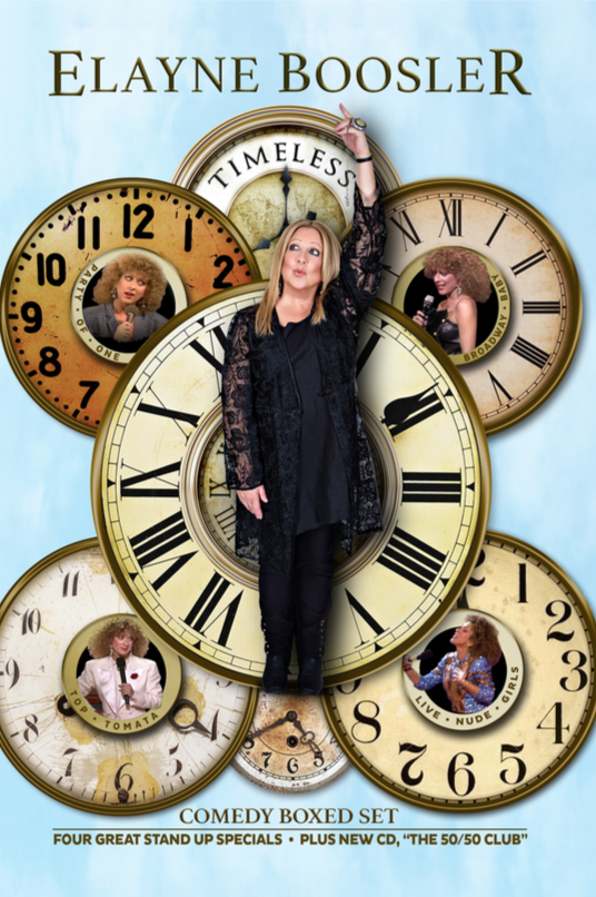 Boosler was the first female comedian to have a comedy special on TV, and her new set will include Party of One, the special Elayne funded herself in 1986 as well as Broadway Baby (1987), Top Tomata (1989), and Live Nude Girls (1991), each in its own way groundbreaking and funny for all time. As a bonus, Elayne’s new album, The 50/50 Club, recorded live around the country, rounds out the set. In New York Times article from 1986 that announced Boosler’s hour-long Showtime comedy special called “Party of One” — a rare accomplishment for women at the time — the Times described Boosler as a member of the “Johnny Carson-David Letterman-Merv Griffin” comedy circuit.