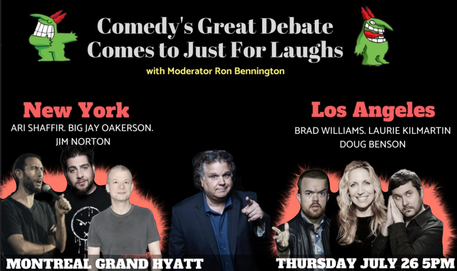 On Thursday July 26 at 5pm, Ron will spend an hour with six of the greatest comedians from both coasts. Comedians come from all over the world to perform comedy at Just for Laughs with the large majority of the headliners hailing from New York City or Los Angeles. It’s the great debate that almost every comedian has considered at some point in their career. Should I move to LA? Should I move to NYC? Where is the best place to perform comedy, to see comedy, and to become a great comedian.