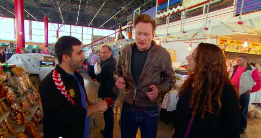 Tuesday night the Conan show aired an episode that was taped entirely in Armenia. The shows were taped last month in the home country of Conan's assistant, Sona. The team spent four days taping, and soaking up Armenian food, dance, television and culture. And Conan got the chance to see if brunettes have more fun. when he taped a cameo on an Armenian Soap.