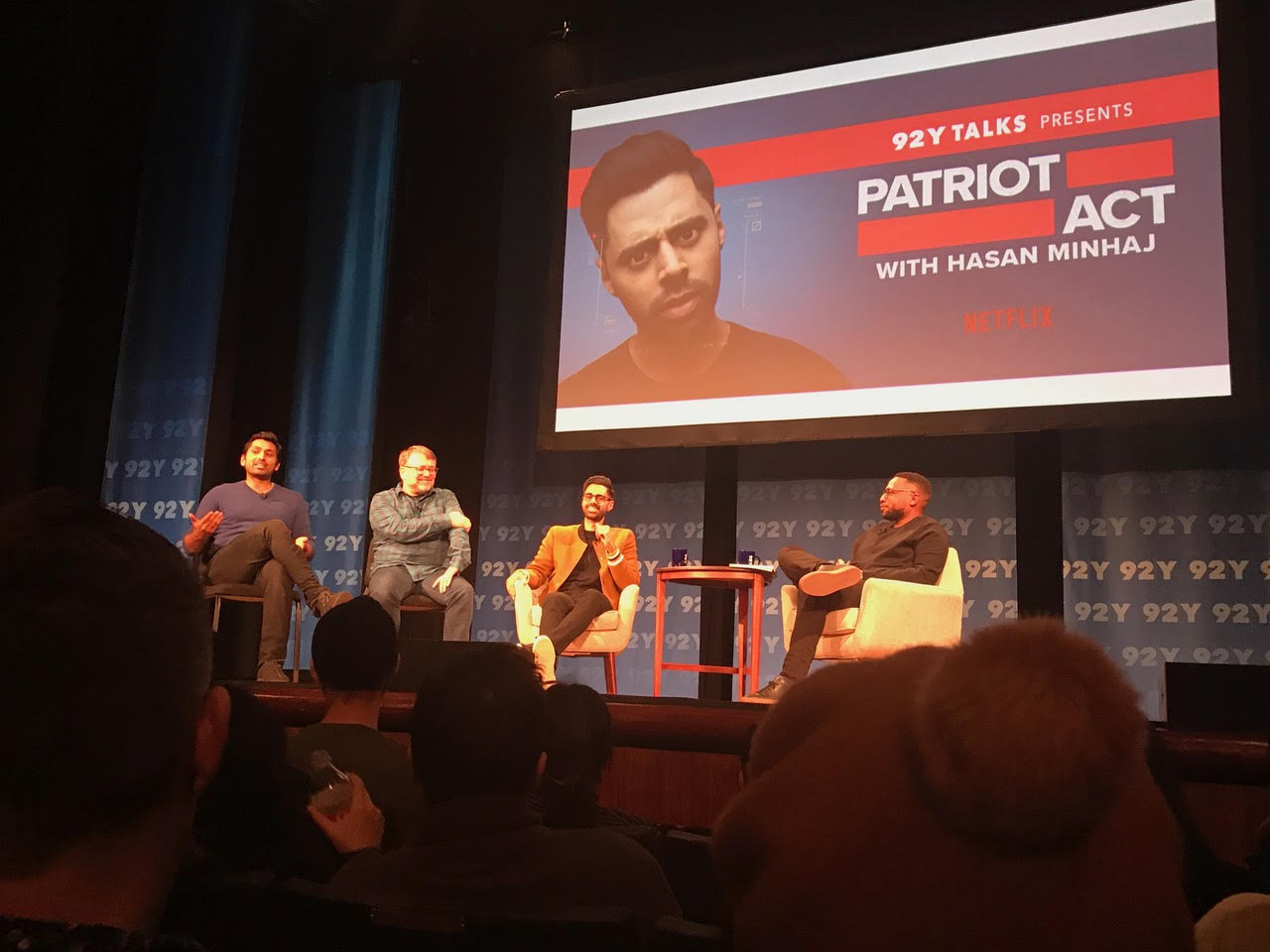 I was excited to see huge billboards around town of my pal Hasan Minhaj announcing his new Sunday night Netflix show “Patriot Act” and even more excited to find out that he’d be appearing at the 92Y this past Friday night. The 92Y has been outdoing itself lately bringing in major comedy figures for special events, and this was another great one. Each of the episodes I saw is kind of like a short one-man show on pertinent topics like our dependence on oil, and the one they showed at the Y on “Affirmative Action.”