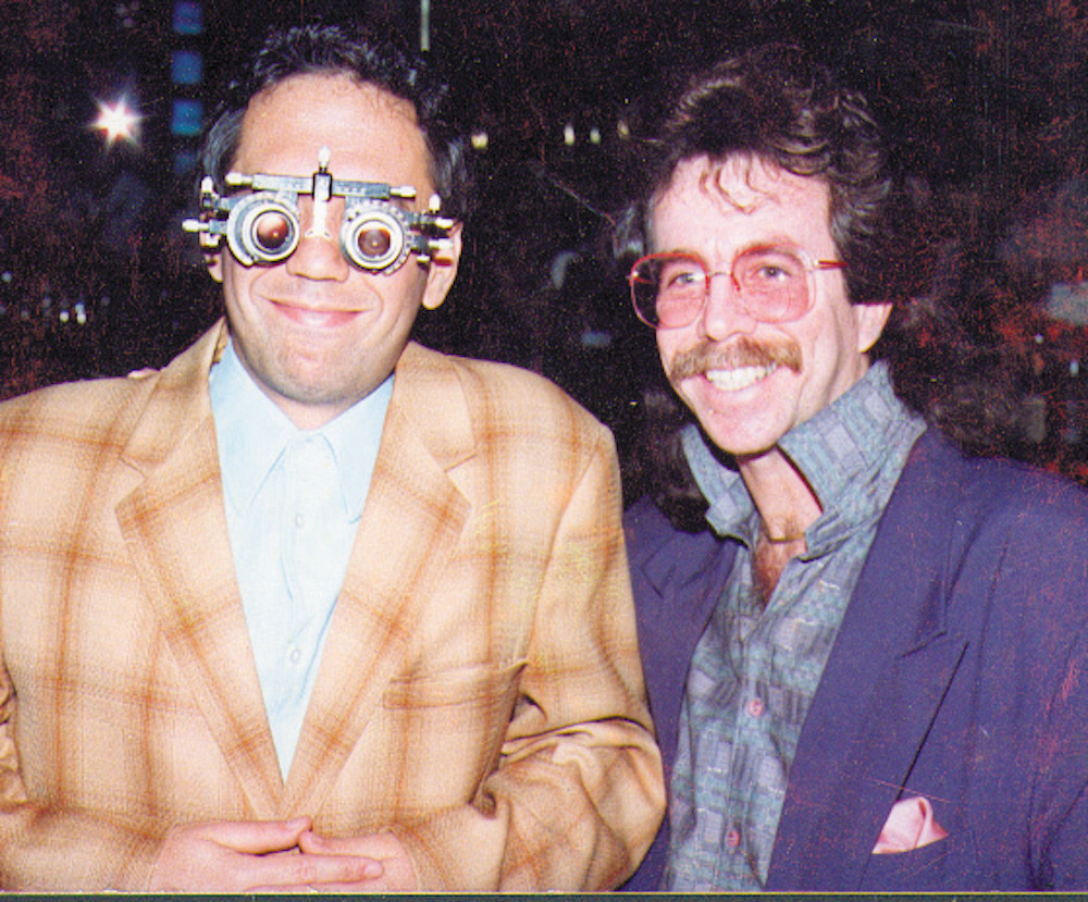 In 1992 a talented filmmaker/director named Frank Chindamo hired me to write a series of short futuristic comedy films for Playboy TV. Frank was one of the very first people to put short films on mobile phones.I called in friends like Richard Belzer, Pat Cooper, Phoebe Legere, Phil Hartman, and of course Gilbert Gottfried. Phil’s wife wouldn’t let him do it because we were shooting in a strip club as a location and she was adamant about not letting him go to that kind of place even though it was off hours and the club wasn’t open for business. The films had to be funny and sexy and in those days most girls were not working out, so I had to cast dancers from the club in certain roles. I cast Gilbert in a film called “Seeing is Believing” where he’s wearing very strange glasses that he had to focus like microscopes in order to see clearly, and he wondered why he wasn’t having any luck meeting girls. The other reason he was striking out might have been because the pick-up line I wrote for him in the script was “ Excuse me, would you like to see some pictures of my furniture?” at which point he’d take out his wallet and show girls pictures of his couch, dresser, and desk. The Exec. Producer was out in LA and had to ok each of the scripts and made me change the line from furniture to computers, which were kind of new at the time but not nearly as funny as furniture.
