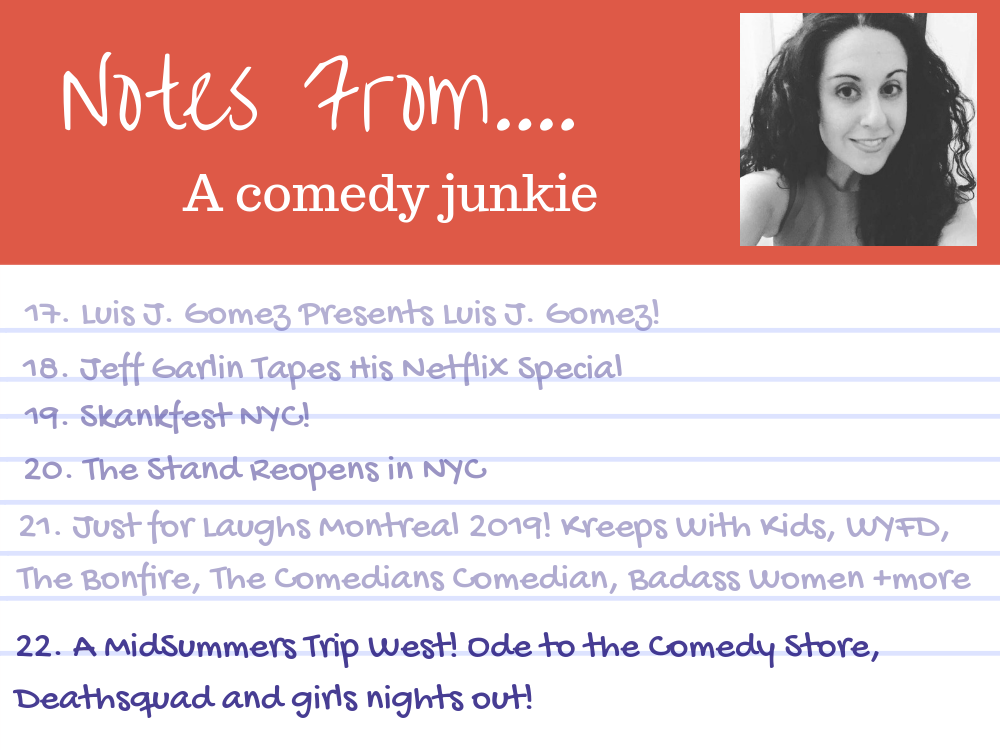 It’s another edition of Notes From a Comedy Junkie as our own Sara Dahms took a comedycation out west! This edition took place back in June, but with Just for Laughs Montreal right on the heels of this trip, we held this post to dive into JFL and can think of no better way to close out the summer than sharing Sara’s reports from The Comedy Store back in June.