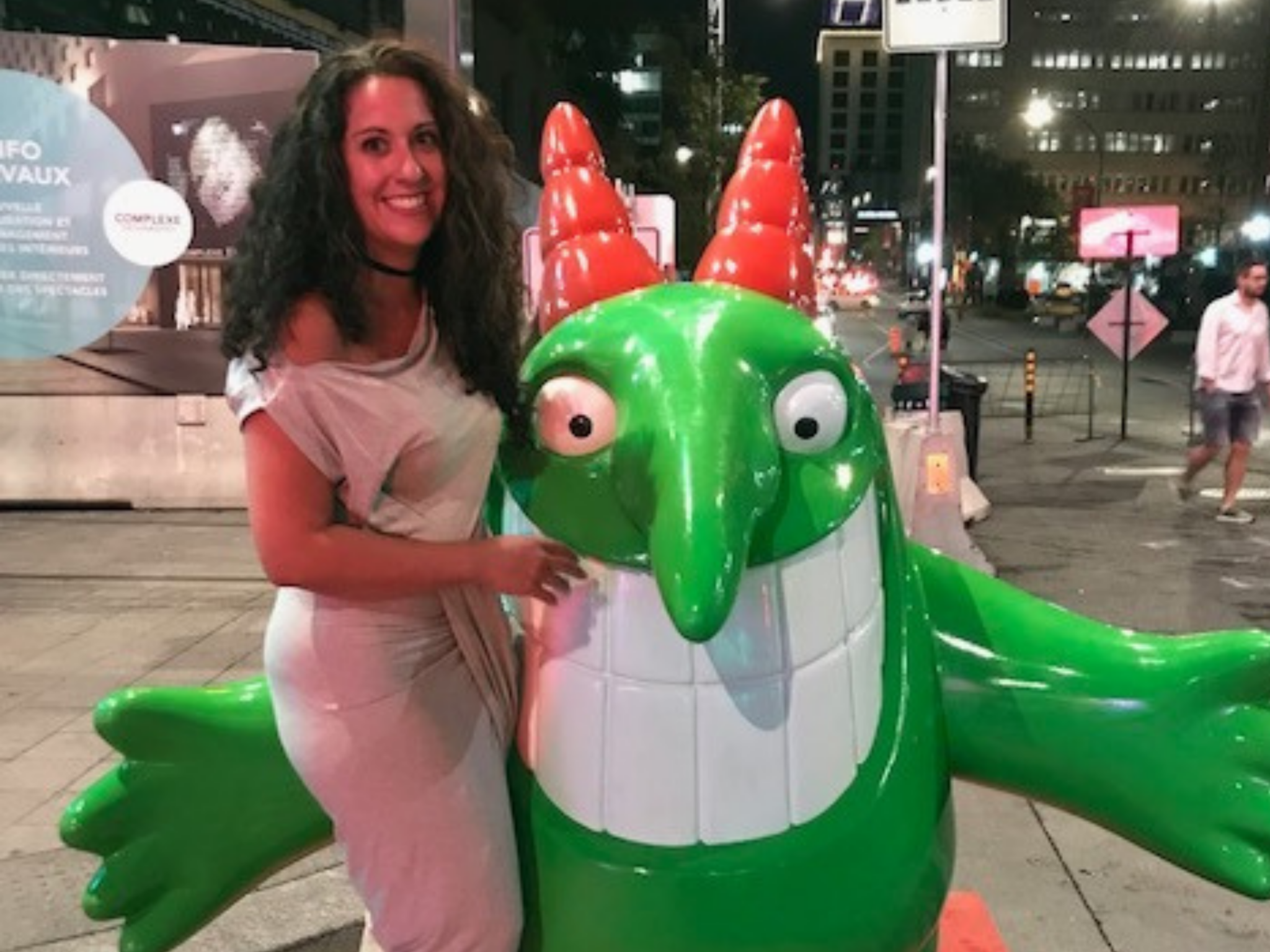 “I met Sara’s words before I ever met her. Her column Notes from a Comedy Junkie was the ticket to glimpse into shows I couldn’t go to. That column was a living history of rooms and festivals moments where the biggest comedians relaxed and spoke candidly about fear and fame. That’s the thing about comedy it’s so fleeting those moments that take so much to make crackle and fade. Sara saw their magic and made them last. She was capable of that sort of writing because that’s who she was as a person someone who really respected the art of Comedy for all it’s complex nuance. She basked in the process of solidifying imperfection and examining it under-stage lights. It turning out all better then it began. She loved a show. She loved all parts of what that took she saw them appreciated them. To have a Sara Dahms article written about you it was truthful and celebratory. She did not frame or angle her stories in accordance to anyone but herself. I love how she would cover the roasts and totally changed how I came to think of them as a major comedy event. A break out moment for stand ups and writers. When I did finally meet this beautiful person it is not a understatement she changed my life. Getting me my first writing gigs at The Interrobang. At Just for Laughs in 2018 When I saw her again in 2019 she was so proud of all that I had accomplished. I remember gushing over the gala tickets we had both gotten. She promised me to show me around Skankfest when I went. She was so gracious in the industry. Would talk comedy with anyone long enough to know if they knew their stuff or not. Introduced everyone around her without pretentiousness. Doing the red carpet at Just for Laughs was one of her true joys. Just for laughs is huge but I know the streets of Montreal will feel so empty without you this summer. I also know a part of you will always be there.”