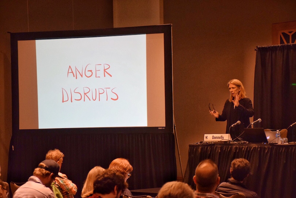 “I draw Donald trump in short pants” Long time New Yorker Cartoonist Liza Donnelly kicked off SXSW with a session about her process of political satire and the importance of examination and disruption of our own creative processed to push humour forward.