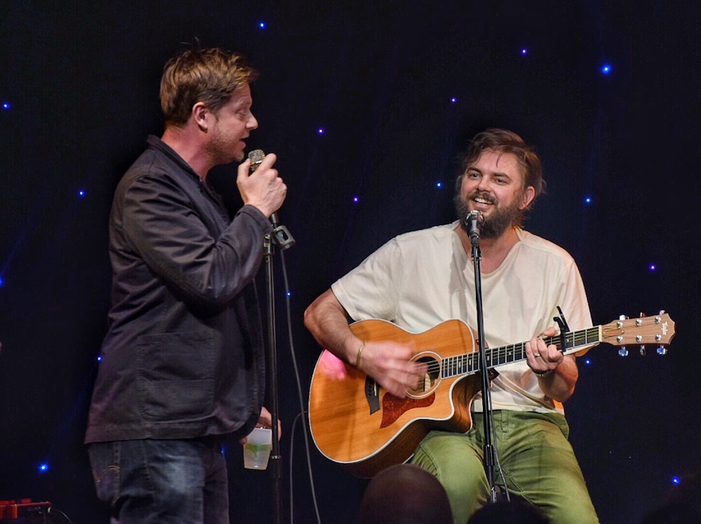 Tim Heidecker and Nick Thune on stage during the “Thune and Friends” show at SXSW comedy hosted by Thune it parodied the long running T.V show Austin city limits and had Thune effortless sliding from host to performer. Thune played the hits (Jokes that have been in his set for years) and made a few Jams on the spot( riffing about the overly technical cutting edge image and attitudes of festival attendees) Heidecker was a surprise Guest on the show and performed 2 songs solo after an impromptu duet with Thune that encapsulated the low key deadpan Absurdity that made Heidecker such a Online comedy crossover mega star