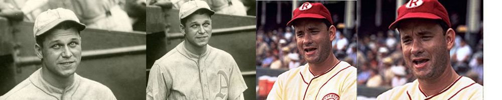 A League of Their Own Jimmy Dugan. In the movie, Tom Hanks plays “Jimmy Dugan” but this character was actually based on real life ballplayer Jimmie Fox who coached the Rockford Peaches after a 20 year baseball career where he was the second person to his 500 home runs after Babe Ruth. When Geena Davis broke down on the set one day Hanks famously said “There’s no crying in biopics!”