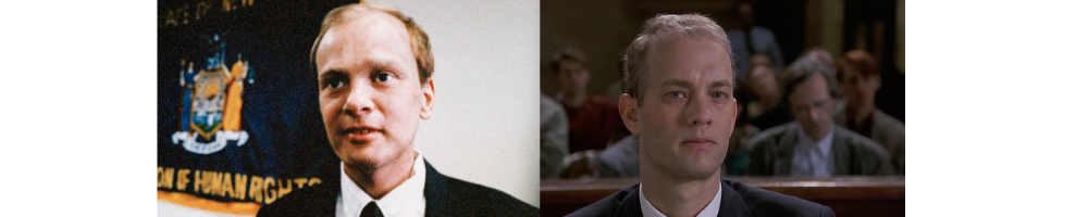 Geoffrey Bowers in Philadelphia – Character Name – Andrew Beckett. Tom Hanks played Andrew Beckett in Philadelphia, the movie about a lawyer who sues his old law firm after getting HIV and his sexuality is outed. Andrew Beckett was actually based on Geoffrey Bowers, whose family had many interviews with the film’s writers and producers and even sued because of how similar scenes in the movie were to his real life without them getting any credit or compensation. Tom Hanks wanted to play a real person so badly in this one it’s like he didn’t care who got screwed over.