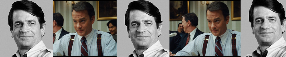 Charlie Wilson in Charlie Wilson’s War.  In this Hanks plays Charlie Wilson, the title character, Wilson was a U.S. Congressman whose efforts led to Operation Cyclone, a program to organize and support the Afghan mujahideen during the Soviet–Afghan War. This movie could have been called “Charlie Wilson’s Lunch” and Hanks would have signed up just to play a real person.
