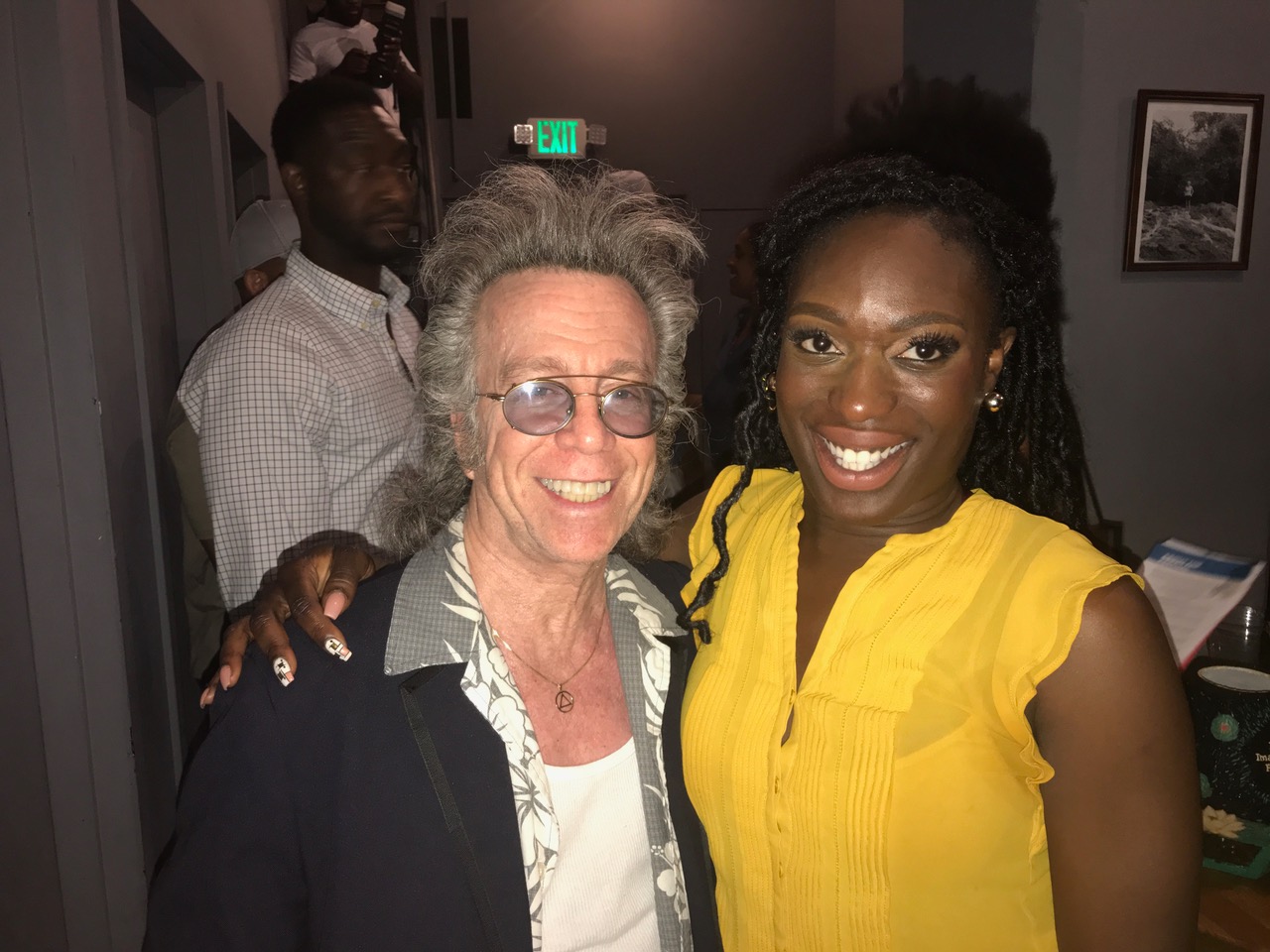 I asked Sean to tell me about “Don’t Tell Comedy” and he said a comic named Kyle KA came up with the idea and got him and his girlfriend, comic Anna Simeri and comic Alex Weber who hosts in LA to go along with it. He says it took off immediately, and now they have weekly shows in 10 plus cities and have done shows in over 20 cities. They do about 2-3 shows a week in LA and hope to go international. Sean and Anna book all the shows in NY and LA and they chose Luke Touma as the host of the New York shows. Giulio told me he’s working on a new album from his alter-ego, rapper Lil Young Big, and that it’s going to have some 360 virtual reality scenes in it. And Nikki told me that on a recent SiriusXM show she had Rainn Wilson on from The Office as a guest, who couldn’t say enough good things about Ian Fidance and went on and on praising him, and his unique look. From what I’ve been told, unique looks are hard to find!!!