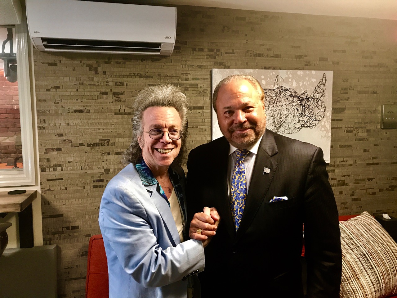 Bo Dietl is an ex-NYPD detective who recently ran for Mayor of NYC. He also had a starring role in HBO’s Vinyl with Bobby Cannavale and is the guy whose character shockingly killed “Dice” Clay’s character in the very first episode. He’s also a funny dude and recently started a podcast called “One Tough Podcast” and what network is it on? GaS Digital of course, the podcast network making waves and owned by Luis J. Gomez and Ralph Sutton. So when they invited me to be a guest I jumped at the opportunity. They have new offices on the Lower East Side down on 6th Street in Alphabet City, and according to Ralph, they’ve only been in that location for about two months. But even though it’s still under construction in some areas, the place is spectacular. First of all, you’d never expect to see a place like this in what looks like a regular Avenue A building from the outside. But then you go into the back and there are steps leading down to a beautiful courtyard with more steps leading down into the studio. You feel like you walked into another world. And the room where they do the podcast is big and comfortable and seats at least 6 people around a large console. The show is produced by Carlo Catuogno, who also works with Bo in his security firm, and who is on the air with him to kind of reign him in at times when he goes off on a tangent, which happens because he has so many stories and so much to say.
