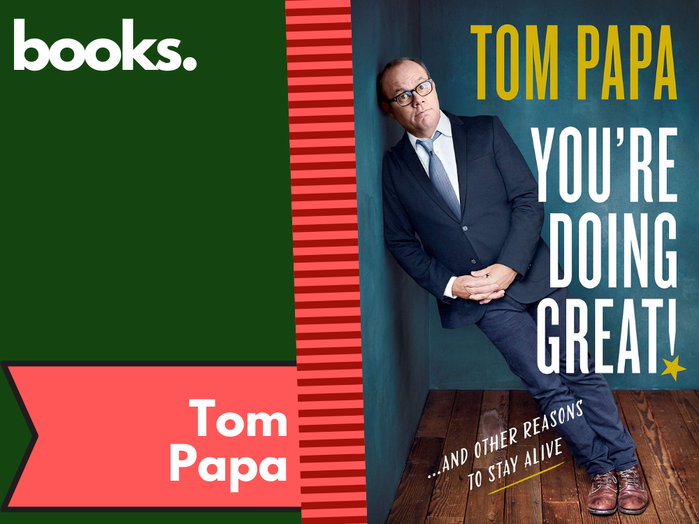 Tom Papa’s gift for making all those insurmountable problems seem like so much fluff and nonsense is on full display in his new book, YOU’RE DOING GREAT. Tom Papa has always been known for his comedic timing but the timing of releasing a book about self acceptance during an emotionally crushing pandemic, may be the best timing of his entire career. This book is all about finding shit to be happy about., It works prepandemic and it works even more post-pandemic. Papa’s philosophy starts from the point of managing your expectations and easing up the pressure you put on yourself. Lighten up, stop depriving yourself, and stop blaming yourself. Take a dip in the pool now and then, eat cheese, call in sick. It’s oddly zen for not being a spiritual book. Think of it as a Western take on Eastern philosophy. Or just think of it as some lighthearted fun. The book is packed with genuinely solid life advice and lots of laughs. Papa practices what he preaches and its been working great for him, so why wouldn’t it work for you?
