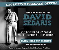 Philadelphia: New Orleans: David Sedaris at the Keswick Theater David performs a reading, Q&A and a book signing on his current tour which lands this Monday October 22, 2012 at the Keswick Theater, and at Tulane University on October 24th.