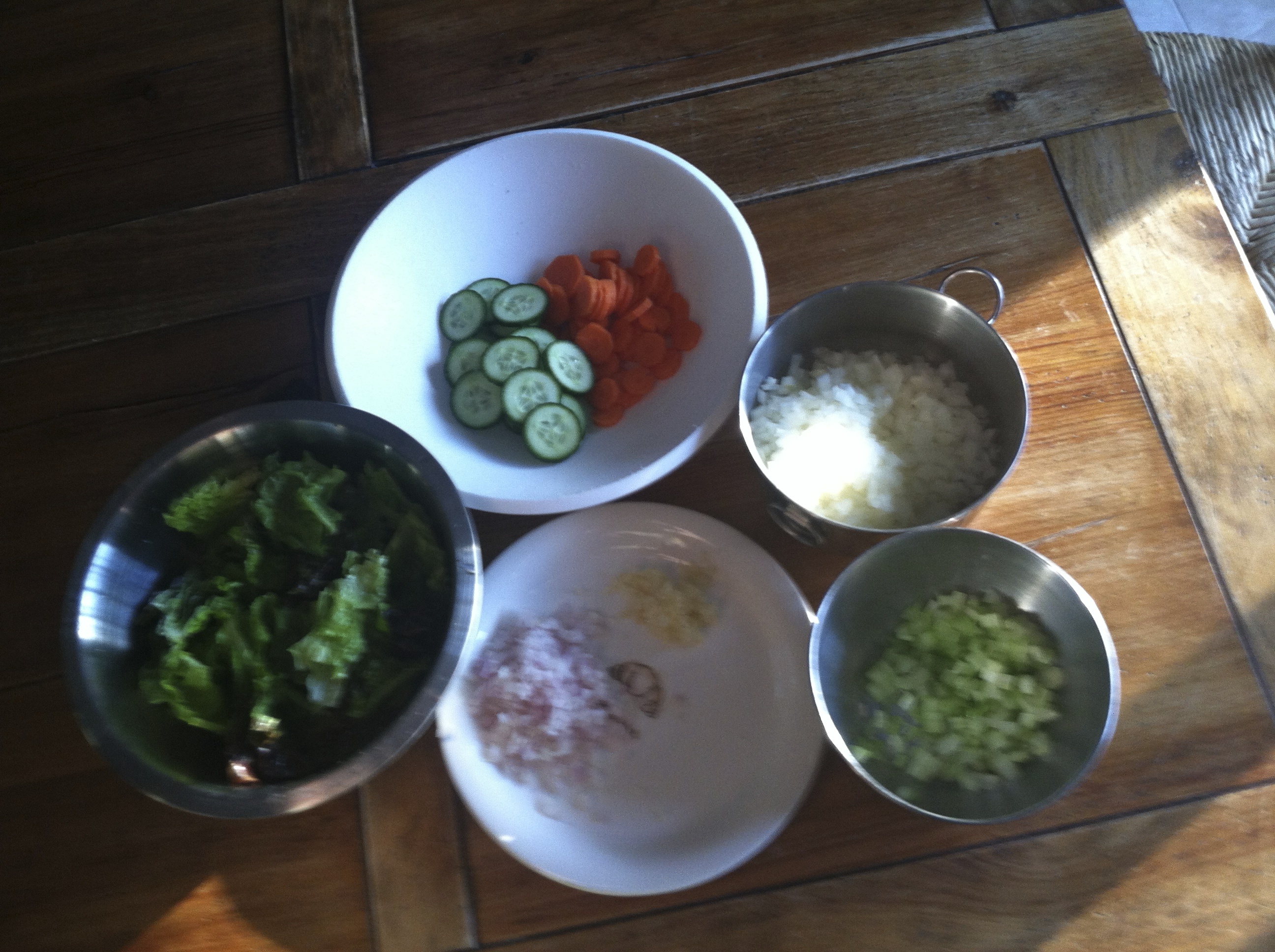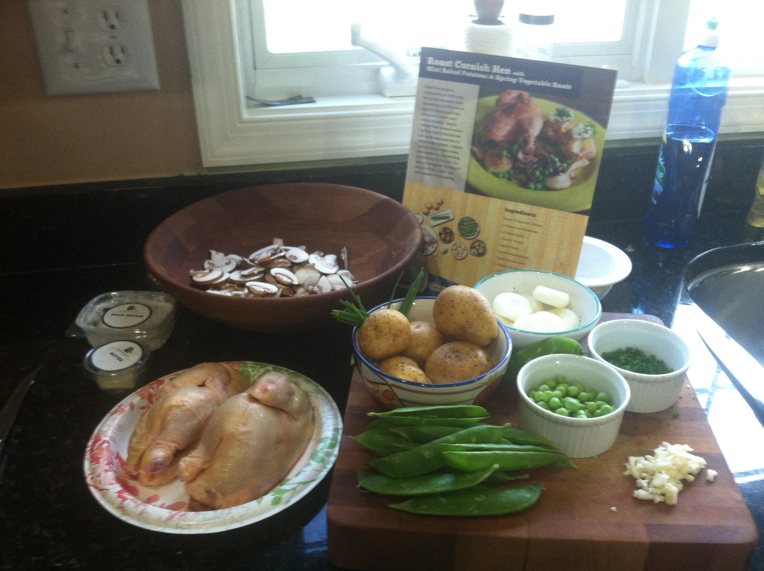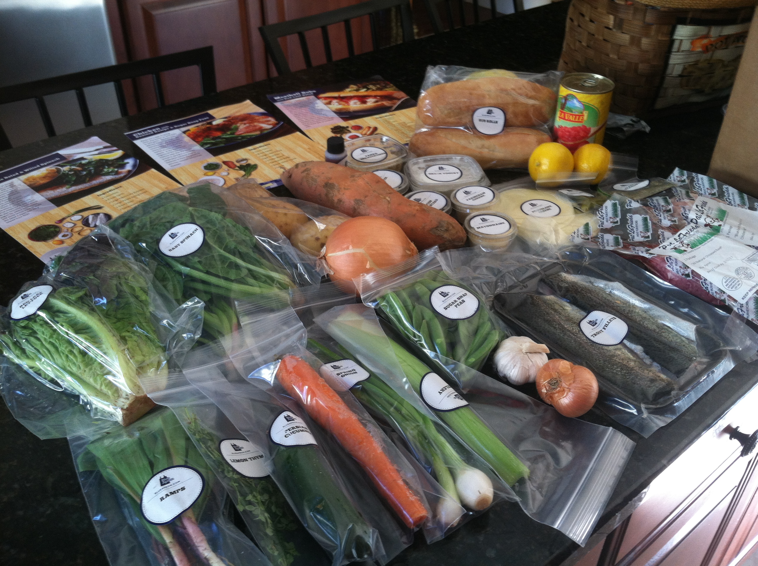 IMG_2009They pick the meals, not you.  So you have no choice but to be adventurous. Some of you won’t like the sound of this.  You’ll think ‘but what if I don’t like something?’  All we can say to that is, we have both adventurous and picky eaters on our team, and out of about 80 meals there were 70 that were unanimously agreed to be amazing, 7 that were okay or had a split jury, and 3 that we wouldn’t make again, but still got eaten.   We can’t swear you’ll love it all, but you will definitely love things you thought you would hate.  It’s also a lot of fun learning to make Mexican arepas, using rice paper to make Vietnamese spring rolls, cooking a roast cornish game hen, making homemade pickles.  Everything can be made again.  The portions are probably smaller than you are used to making at home, but we’ve never found ourselves still hungry after finishing.  If you really need a big portion you might want to double up your order.