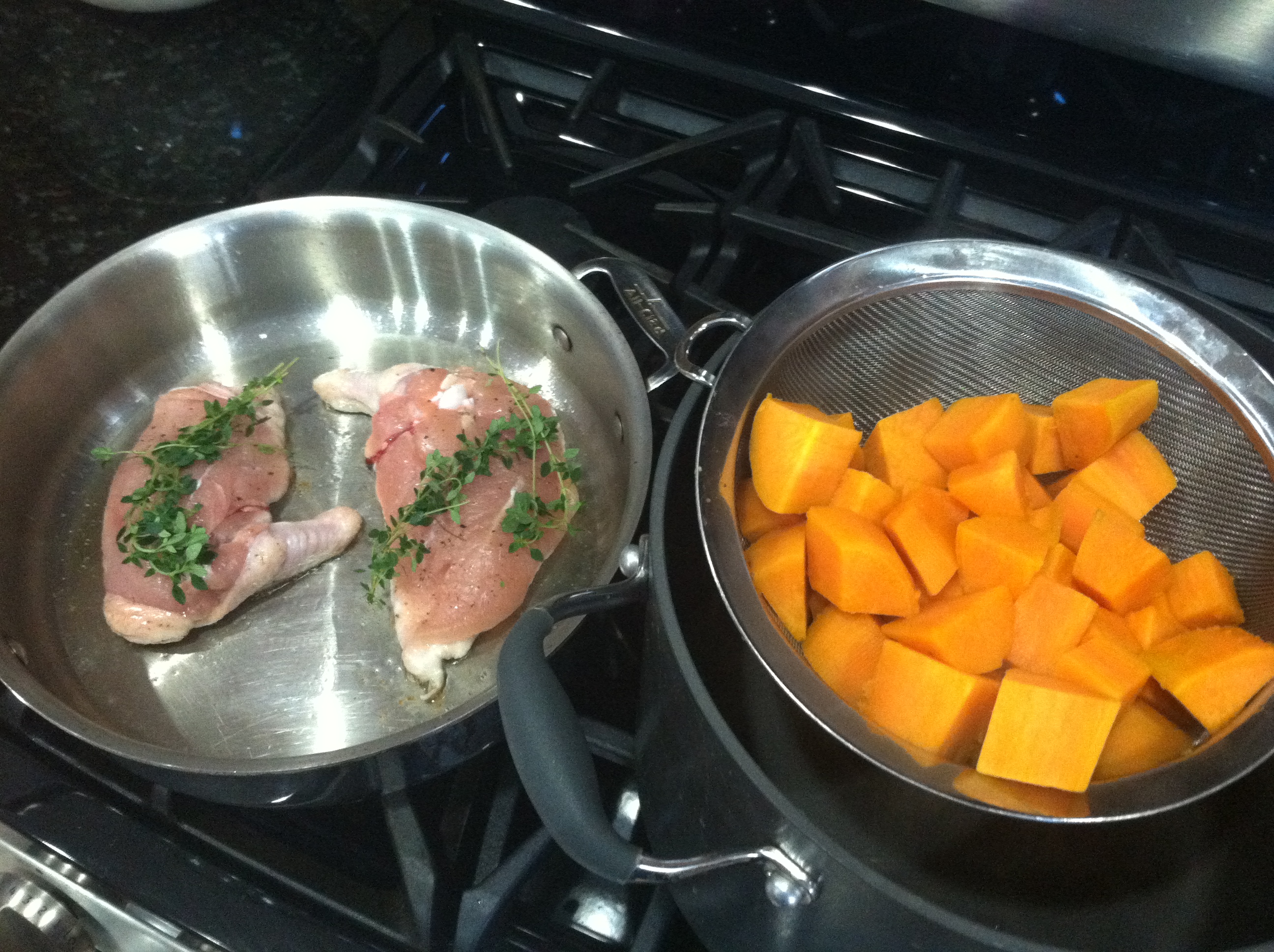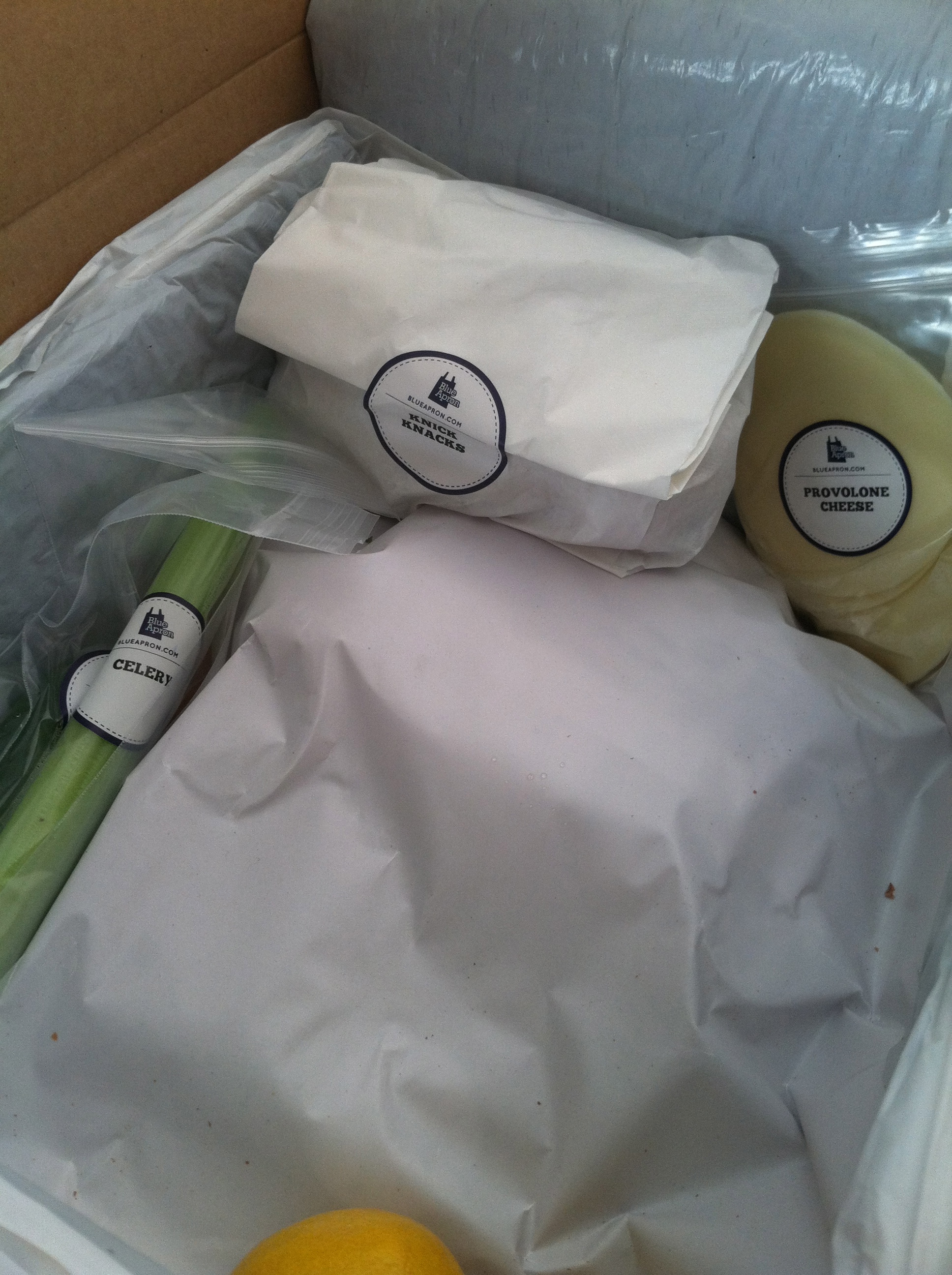 IMG_1990The Blue Apron basics are simple:  once a  week you get a box containing all the ingredients you need to make three  dinners, sent overnight using re-usuable deep freeze icepacks.  The recipes have step by step instructions.  All you need is some simple kitchen essentials (a pot, a frying pan, a baking sheet).  Everything is easy to make– if you can pick up a knife and turn on a stove– you are qualified.  You also don’t need a lot of time.  They’ve eliminated the need to go to the supermarket, and every recipe takes about 35 minutes to prepare.