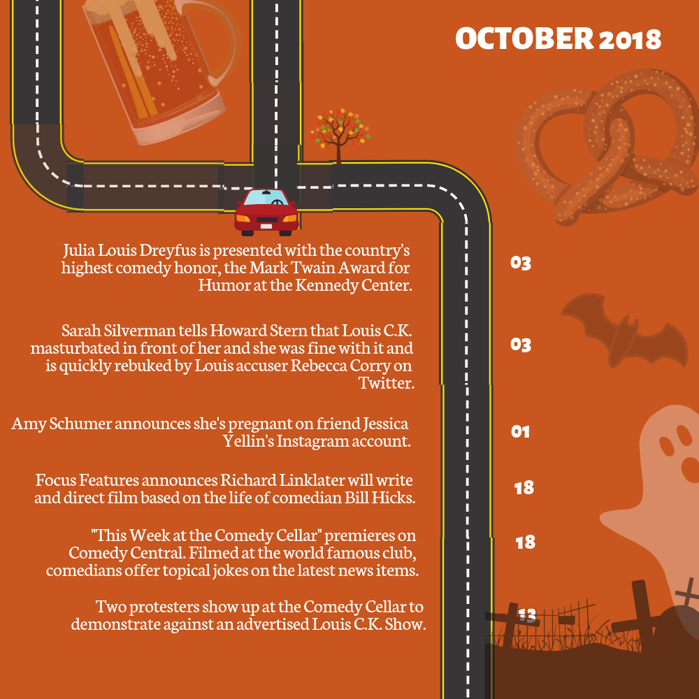 October 22, 2018 – Sarah Silverman tells Howard Stern that Louis C.K. masturbated in front of her and she was fine with it and is quickly rebuked by Louis accuser Rebecca Corry on Twitter.