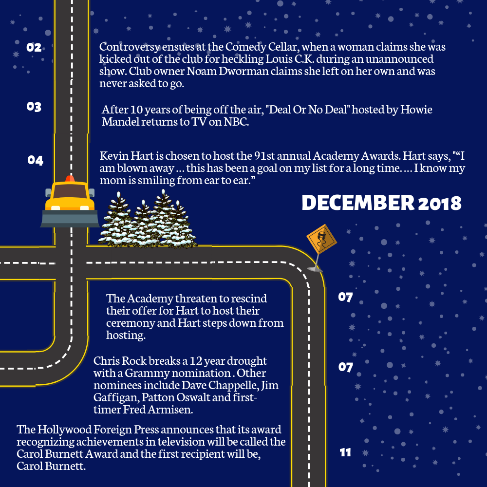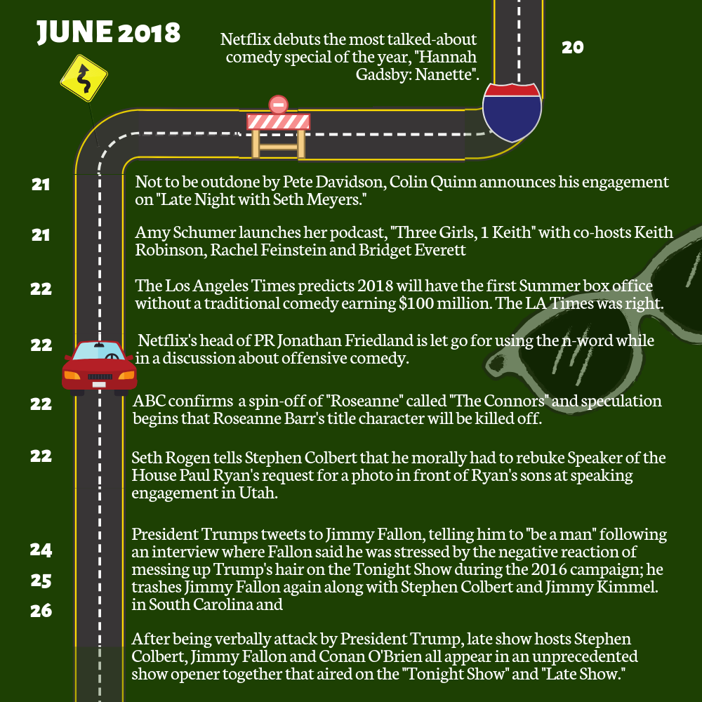Enjoy this silly (and yes often poorly aligned) graphic road trip through comedy in 2018.