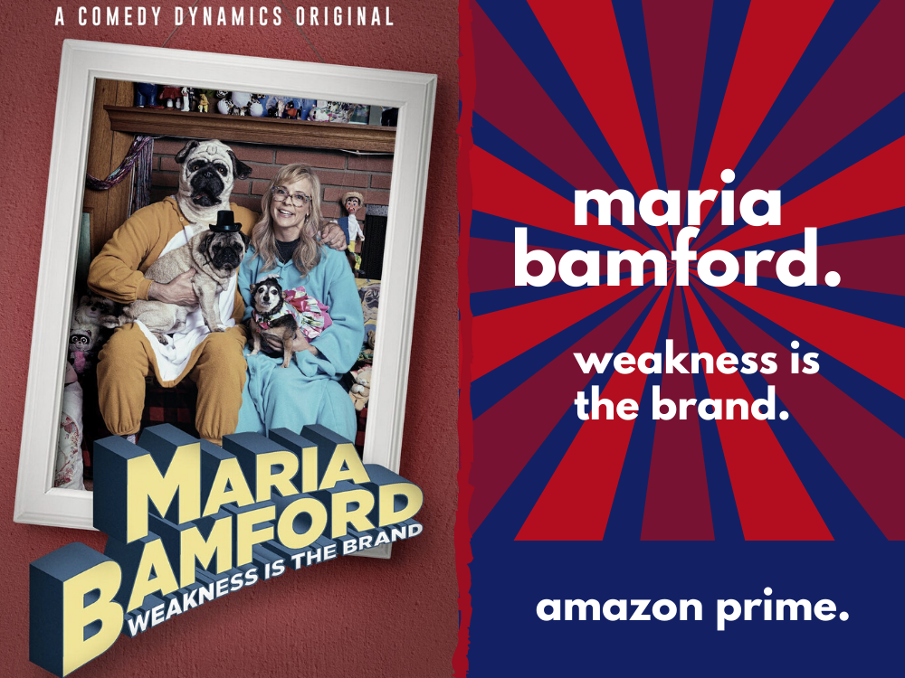 MARIA BAMFORD: WEAKNESS IS THE BRAND. AMAZON PRIME. Maria Bamford isn’t just funny in her new special, she’s a scream. Bamford crams every minute full of so much comedy that you will have to watch the hour again so you can catch all the nuance and digest it later. The title of course is hilarious because Bamford is anything but weak on stage. In fact her confidence is blinding. But the title comes from a joke where she compares herself to her blind and deaf dog, while talking about a tremor she has that can be distracting. She doesn’t correct it because, well, Weakness is the Brand, and it’s made her a millionaire. But there is no sign of weakness in this power hour. Whether she’s in an argument with herself, debating whether she’s an idiot or an attention whore for filing a restraining order against the president for example- or singing about turkey legs- or brilliantly Inhabiting the characters of the people who personify the true crazy in our culture, the hour is a whirlwind of hilarious. Who else could conceive of sexual role play with her husband that revolves around intractable social issues-? Yes many comedians have talked about gentrification, but never through the device of a sex scene between Jen, a hipster who moves into a cheap neighborhood, and Art, a gruff artist whose lived in the neighborhood for 30 years. Maria is everything that has made her a star and more in Weakness is the Brand.
