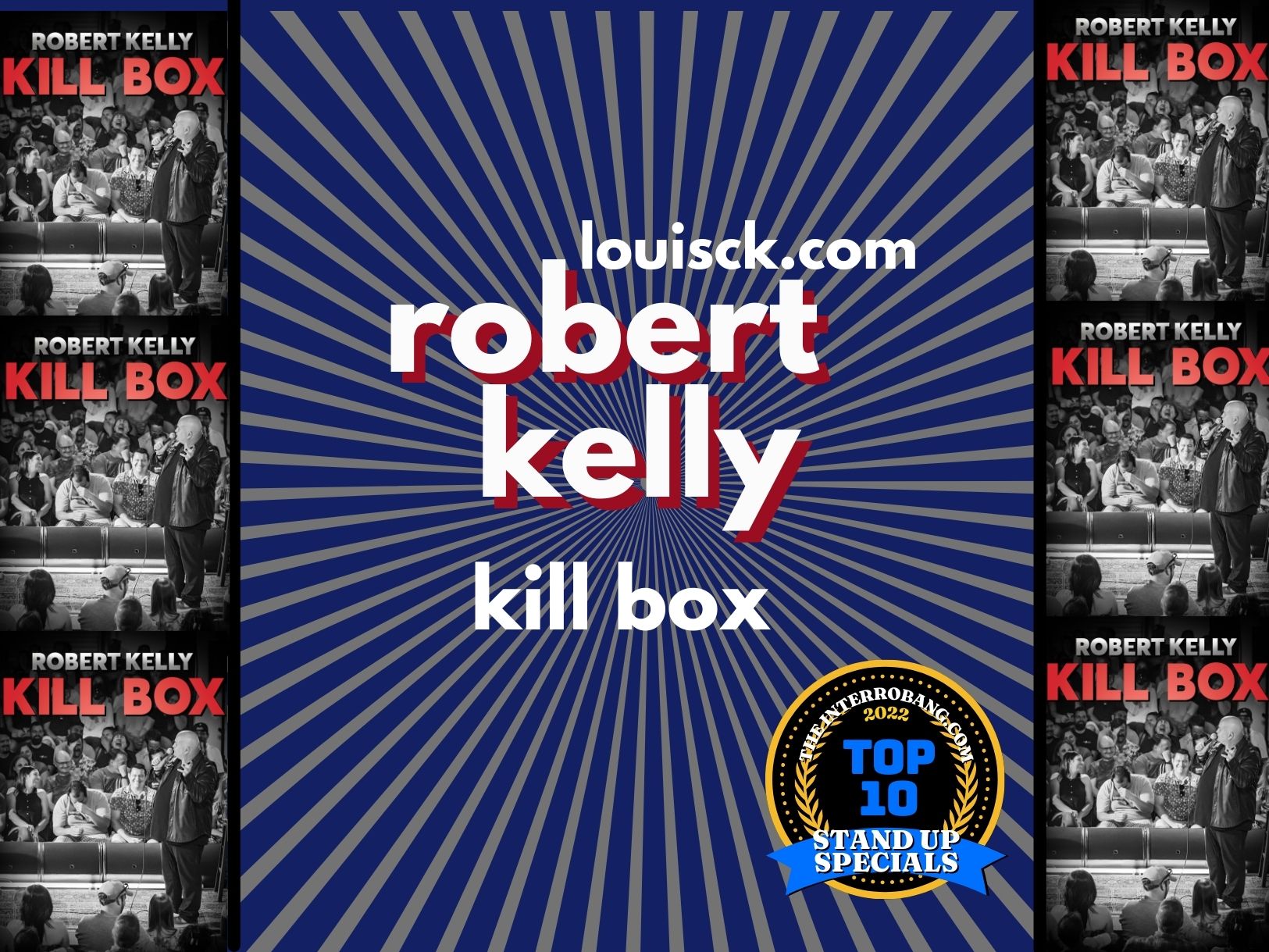 ROBERT KELLY. KILL BOX.  LOUISCK.COM.  One of the funniest comedians touring today, yesterday and tomorrow, Robert Kelly has put together a special that will leave you out of breath from laughing so hard. He starts out funny and ends like a fireworks finally.  No one owns the stage like Bobby Kelly and he wouldn’t and couldn’t put out a special unless he was certain he had given a killer performance. His infamously funny snow tubing story is peak Bobby, and yet he somehow even surpasses that with a story about getting intimate with his wife on a car ride home from Tony Roma’s.  And we love Kelly’s candid stories about raising his son in a cultural climate that’s very different from his own childhood.  Taped in Tampa Florida with a live band on stage, Bobby Kelly shares stories that WILL make you blush, and WILL make you laugh, and WILL make you tell your friends they need to buy it.