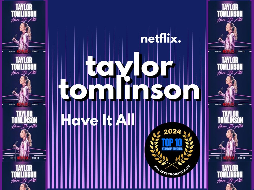 TAYLOR TOMLINSON. HAVING IT ALL. NETFLIX. In her third special Taylor doesn’t understand why people claim you can’t have it all. And she clearly can, including being hot and funny, touring and on television, and selling out the biggest venues in America. And she’s only 30. In Having it All, Tomlinson jokes about being unprepared for meeting Hugh Jackman in real life, and her new 30’s relationship with her friends- living vicariously through their married sex lives, and giving her married friends someone to live vicariously through- a single friend. Taylor also just delivered the best idea to happen to healthcare since the hospital- the AR- an anxiety room across from the emergency room for people just having panic attacks. Filmed at Capitol One Hall in Tysons Virginia.