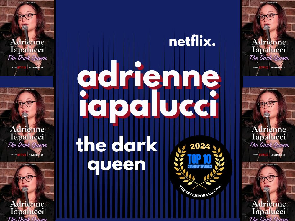 ADRIENNE IAPALUCCI. THE DARK QUEEN. NETFLIX. We’ve been waiting for this one. There are many comedians throughout history who have put in a claim to be the darkest comedian on the stage, but Iapalucci gives every one of them a run for their money. Iapalucci is fearless- deadpan and dark, sarcastic and blunt. And so funny. Throughout the hour, she covers hot button topics like Israel, Gaza, and Ukraine- and she has solutions (give Palestine casinos) and issues you never knew were issues like the relative health of dog vaginas. She likes the GOP because they’re honest about not caring about poor people. And honestly she has no time for either side. Taped at the world famous Comedy Cellar, The Dark Queen is the darkest hour on our list.