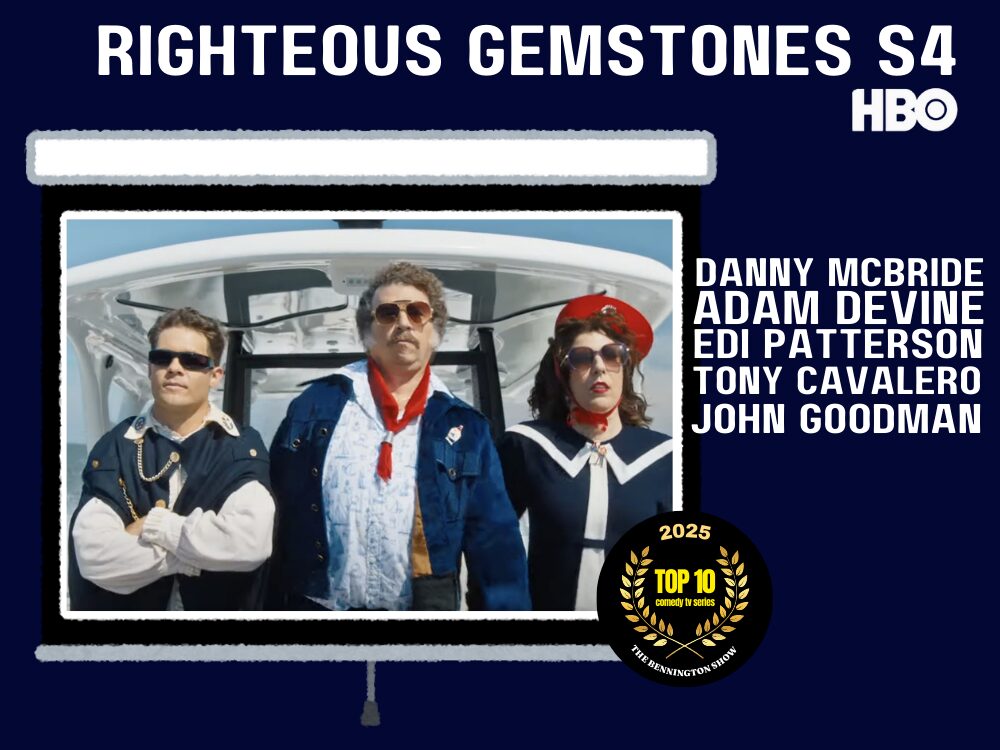 THE RIGHTEOUS GEMSTONES S4. HBO. In its fourth and final season, The Righteous Gemstones remained as vicious, outrageous, and confidently absurd as ever. The show’s balance of broad, profane comedy and surprisingly rich characters is as intoxicating as the first season. The jokes are big, the performances fearless, and the ensemble—led by McBride, John Goodman, Edi Patterson, and Walton Goggins—continues to provide the level of genius Danny McBride and his ensembles always deliver. What makes this season stand out is its refusal to soften its characters while still allowing them moments of humanity. Season four reaffirms The Righteous Gemstones as one of television’s most reliably daring and consistently funny comedies—and an easy inclusion among the year’s best.