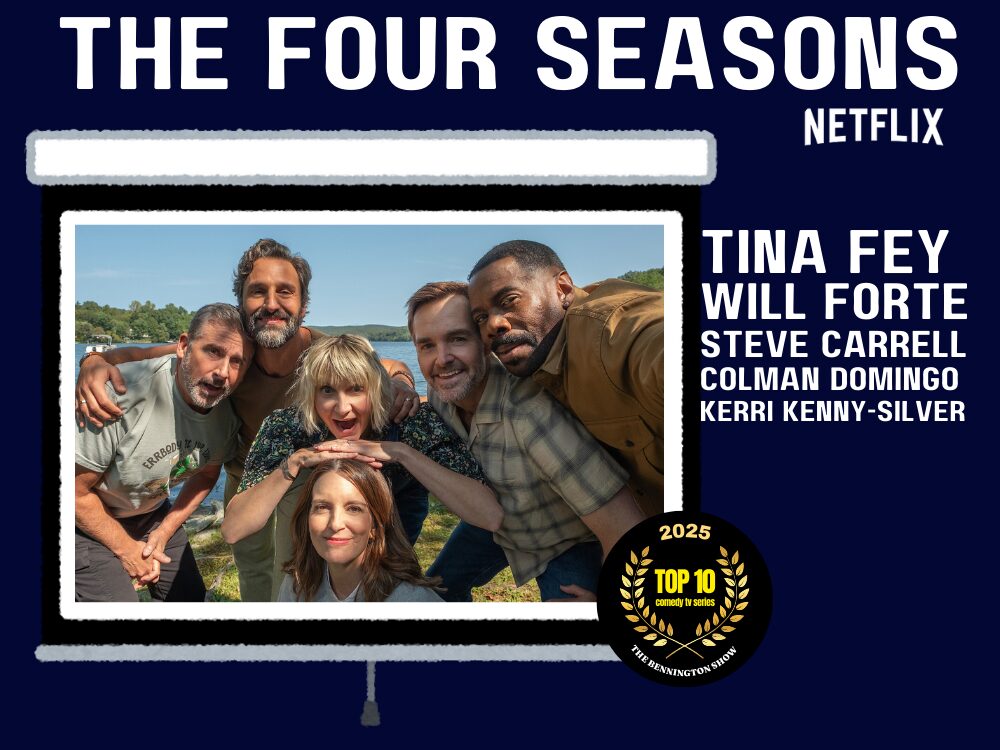 THE FOUR SEASONS, NETFLIX. This updated take on the comedic classic from 1981 preserves the core appeal of the original, while updating the premise for new generations. Adult long term relationships are at the core of the series, three pairs of them, navigating latter mid life crisis, wanderlust, loyalty, and what it means to be a friend during the time of life when marriages start to crack. Despite some uncomfortable and all too relatable themes, the show is easy to settle into. There’s no ground shaking premise here, but its funny, and watchable. At the center is Steve Carell, delivering exactly what he does best—that magic ability to make you root for the character who is being a complete idiot- warmth edged with equal parts insecurity, and bravado. The Four Seasons isn’t trying to reinvent comedy or overwhelm you with jokes, but it is a funny, humane series that’s a pleasure to spend time with, and one that knows sometimes the best comedy is simply well made and well felt.