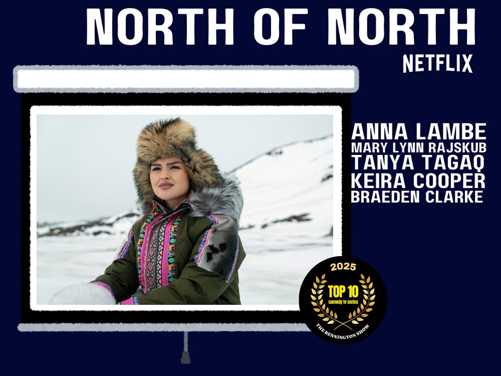 NORTH BY NORTH. NETFLIX. Take a trip to the arctic, because we’re going North of North for the rare 2025 comedy that won’t also make you anxious, depressed, or freaked out. North of North surprised audiences in 2025 by turning the remote community of Ice Cove into one of TV’s most charming and heartfelt comedy settings. The series follows Siaja, a young Inuk mother who, after a very public exit from her marriage, sets out to reinvent her life in a place where everybody knows your business—but also genuinely cares about you. What makes the show stand out is its combination of warm, character-driven humor and refreshing cultural authenticity, anchored by a breakout performance from Anna Lambe and the amazingly talented Mary Lynn Rajskub. The comedy finds laughs in the quirks of small-town life, the chaos of family dynamics, and the universal struggle to carve out personal identity, all against the breathtaking backdrop of Canada’s Arctic. North of North doesn’t just accumulate laughs—it invites viewers into a community rich with personality, humor, and heart, earning its spot as one of 2025’s most delightful and distinctive comedy series