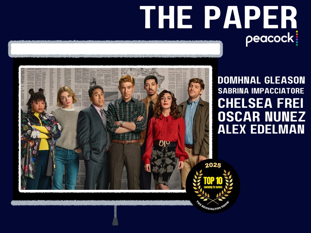 THE PAPER, PEACOCK. The Paper surprised us, as one of 2025’s funniest and smartest and most underrated comedies of the year. The series channels the chaos of a failing local newspaper into a brilliant comedy of errors that earns its place in the universe of The Office. Set inside the newsroom of the fictional Metro Globe, the series follows an eccentric ensemble of reporters, editors, and interns as they chase scoops, battle budget cuts, and navigate social media spectacles—all while trying to keep the presses rolling and their personal lives intact. What sets The Paper apart is its sharp writing and excellent timing: every absurd headline chase and awkward office confrontation feels rooted in truth, even as it pushes situations to hilariously heightened extremes.