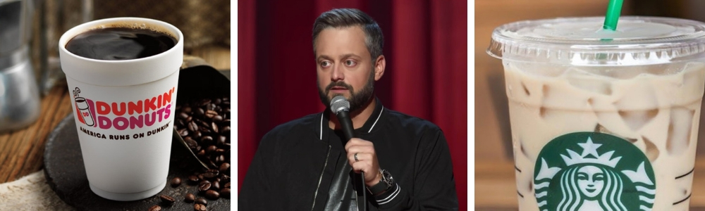 Q13: How does Nate take his coffee? And where does he get it? Is he a Dunkin Donuts, hot and black? Or a Starbucks Iced with Cream kind of guy?